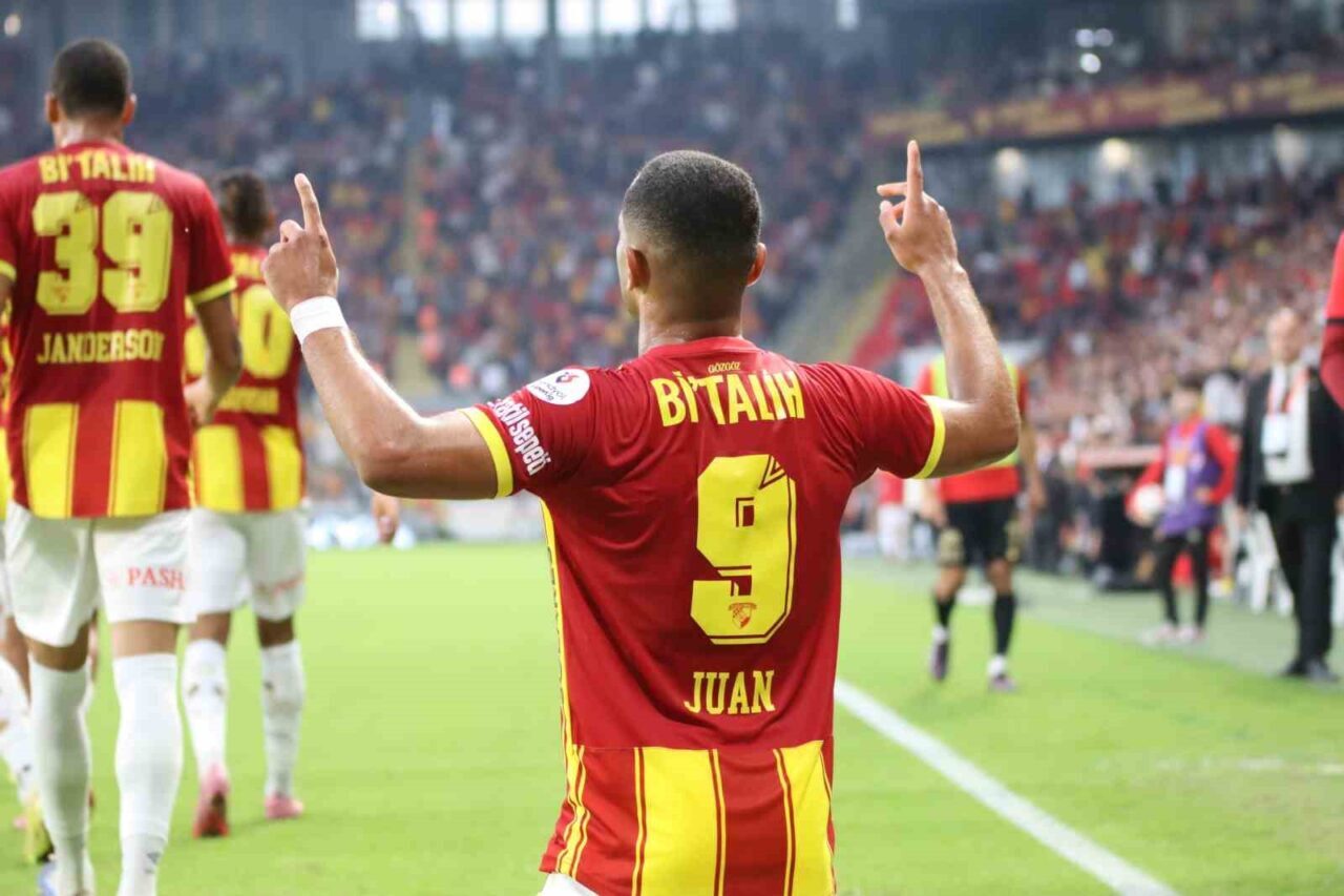 İlk yarının son anlarında, Miroshi’nin etkili ortasında Juan, kafa vuruşu ile topu ağlara göndererek Göztepe’yi 1-0 öne geçirdi.