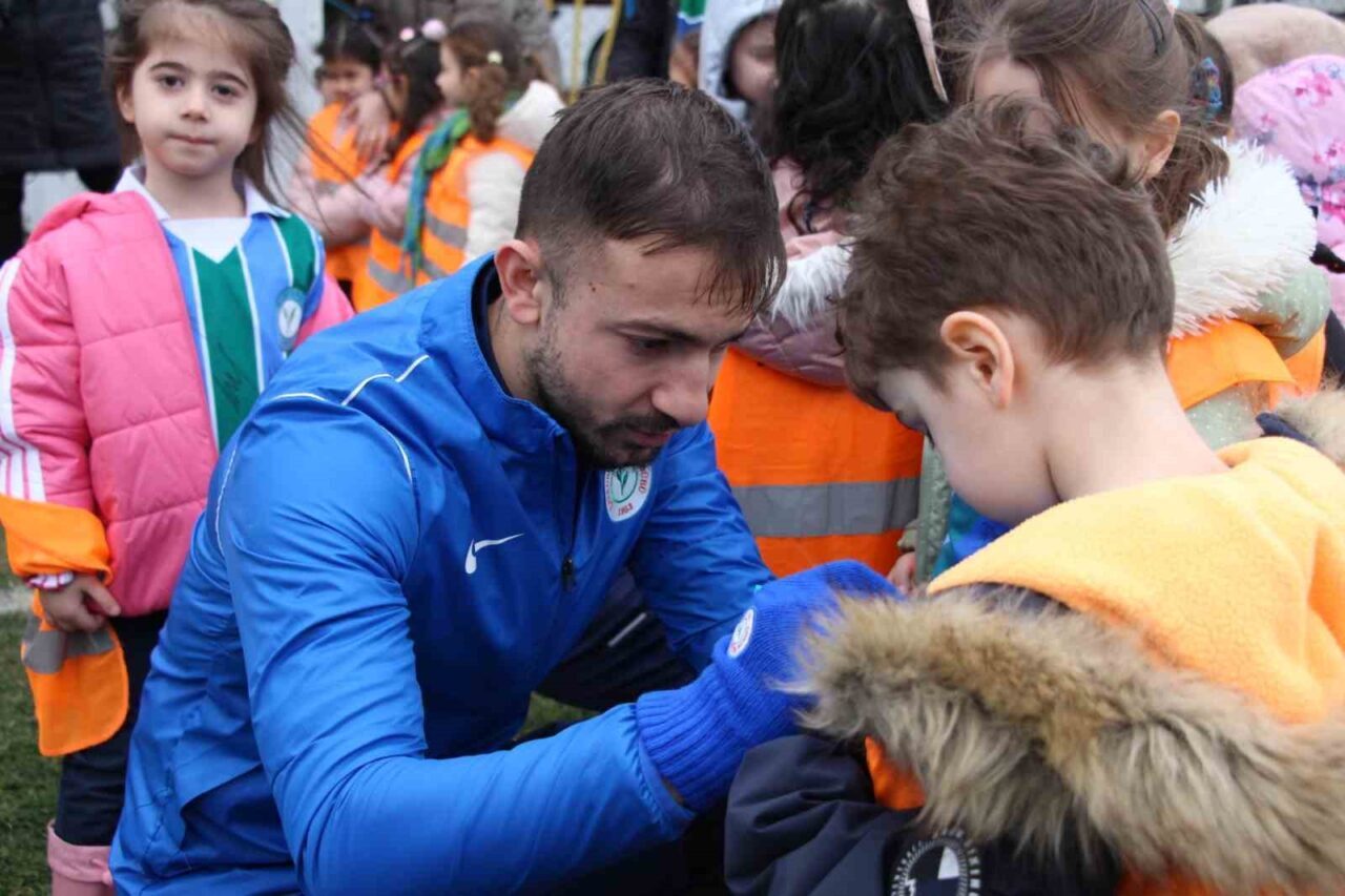 Ziyaret sırasında sahaya çıkan Çaykur Rizesporlu futbolcular da, minik taraftarları kırmadı. Futbolcular, çocukların formalarını tek tek imzalayarak onlara büyük sevinç yaşattı. Miniklerin futbolcularla kurduğu sıcak iletişim, renkli görüntüleri ortaya çıkardı.