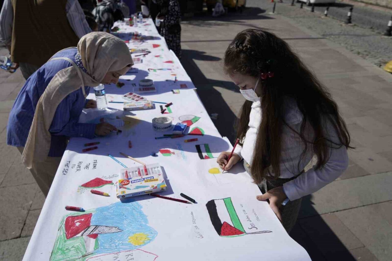 15 Temmuz Zafer Meydanı’nda toplanan çocuklar ve gençler, Gazze’deki insanlık dramına dikkat çekmek amacıyla bir araya gelerek duygularını tuvallere yansıttılar. Etkinlikte, savaş mağduru çocuklar için barış, özgürlük ve kardeşlik temalarında resimler çizen katılımcılar, Filistinli akranlarına umut dolu mesajlar göndermeyi amaçladılar.