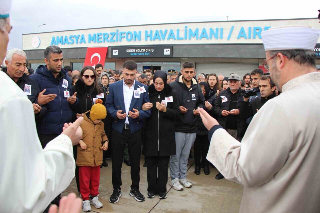 Amasya Merzifon Havalimanı’na inen askeri uçak, Türk bayrağına sarılı olan şehitlerin naaşlarını taşıdı. Cenazeleri karşılama törenine, şehitlerin aileleri, Amasya Valisi Önder Bakan, Çorum Valisi Ali Çalgan ve çeşitli protokol üyelerinin yanı sıra çok sayıda vatandaş da katıldı.