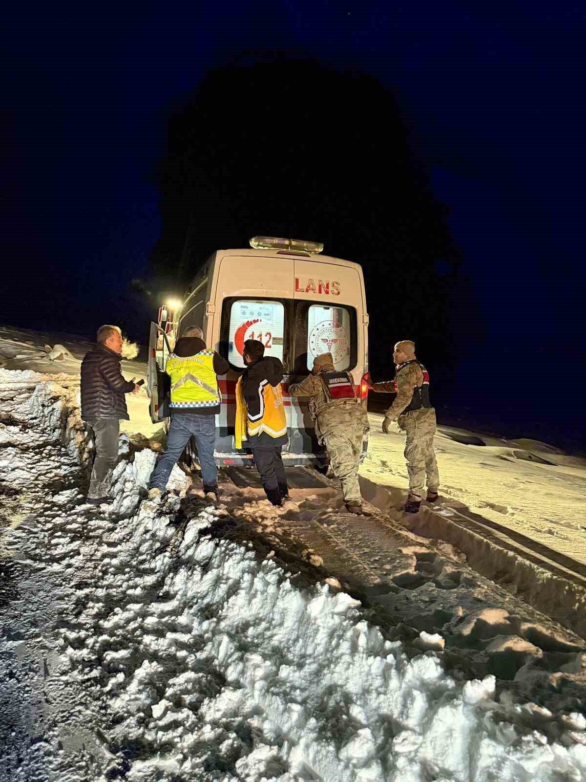Ambulansın ilerleyemediği yolda, iş makineleri öncülük ederek kar savurma aracı ile açma çalışması gerçekleştirdi. Yaklaşık 2 saat süren zorlu operasyonun ardından sağlık ekipleri hastaya ulaştı. İlk müdahalesi olay yerinde yapılan vatandaş, ambulansla Güroymak Devlet Hastanesi’ne sevk edildi.