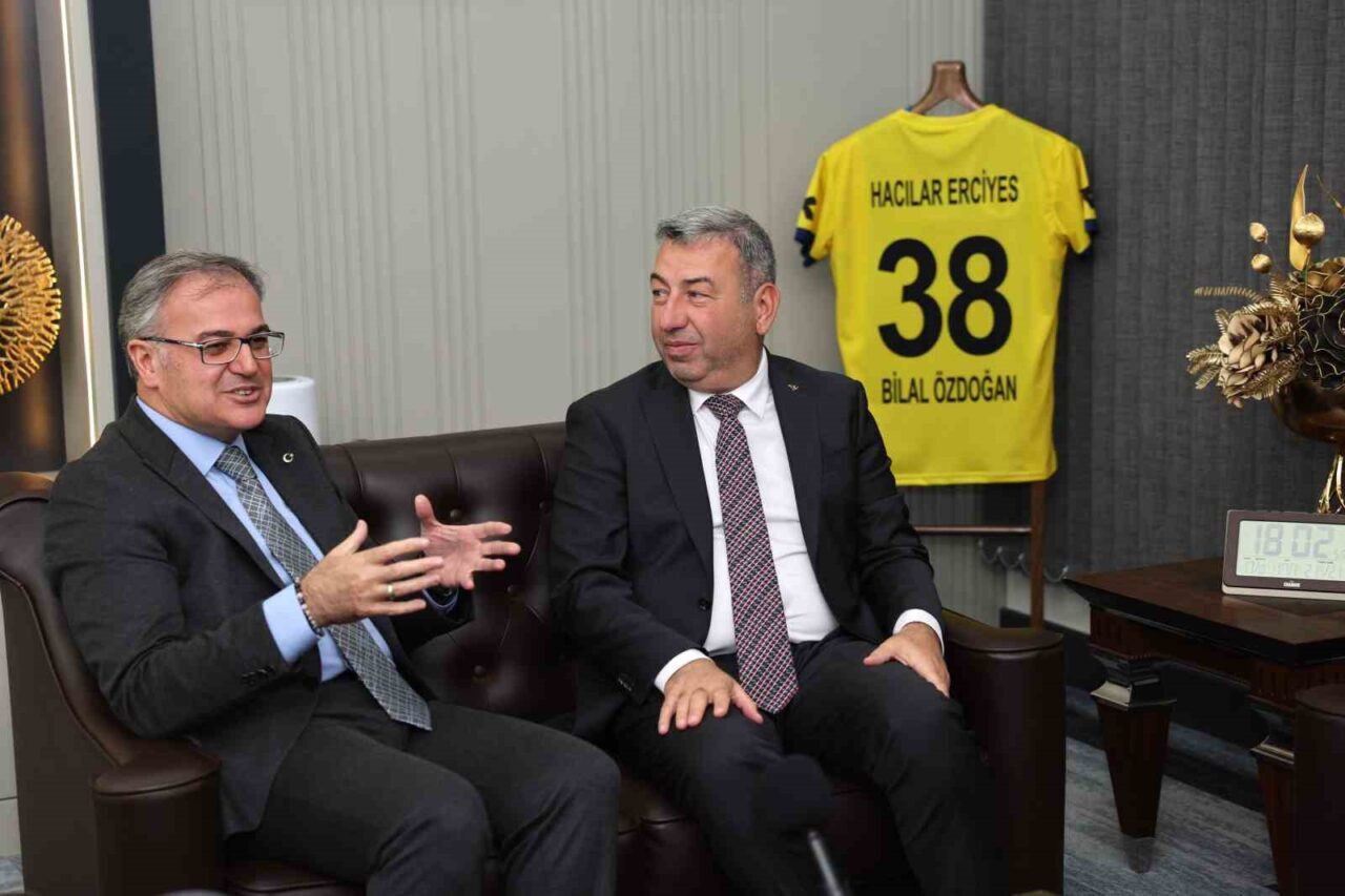 Başkan Özdoğan, AK Parti Genel Merkez Yerel Yönetimler Başkan Yardımcısı Ekrem Görçeker, AK Parti Kayseri İl Yerel Yönetimler Başkanı Ahmet Canleblebici, İl Yönetim Kurulu Üyesi Özgür Özuzun ve diğer teşkilat üyeleriyle AK Parti Hacılar İlçe Başkanı Fazilet Kahraman’ı makamında misafir etti.