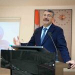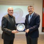 Vali Çelik, programın sonunda Prof. Dr. Şahin Karasar’a sunumu ve katkılarından dolayı teşekkür ederek plaket takdim etti.