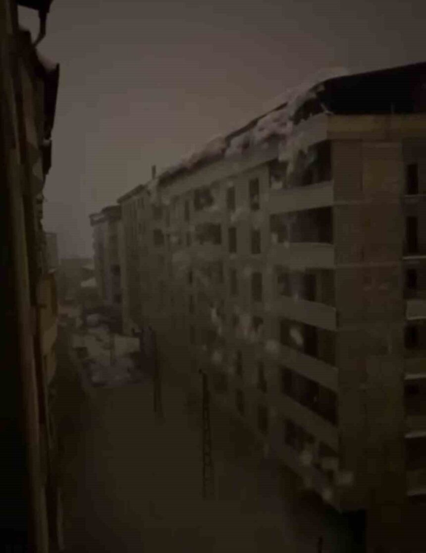 Meteoroloji Genel Müdürlüğünün bölgedeki “yoğun kar yağışı” uyarılarının ardından Hakkari ve ilçelerinde etkili olan kar yağışı, yaşamı durma noktasına getirdi. Şemdinli ilçesi Navşar Mahallesi’nde bir binanın çatısında biriken tonlarca kar, büyük bir gürültüyle aşağıya kaydı. Binanın önünde bulunan elektrik direklerinin üzerine düşen kar kütlesi, enerji hatlarını kopardı. Mahallenin tamamında elektrik kesintisi yaşanırken, olay güvenlik kamerasına anbean yansıdı. Görüntülerde kar kütlesinin düşmesiyle beton direklerin adeta bir kağıt gibi ezildiği ve çevrenin kar tozuyla kaplandığı görüldü.