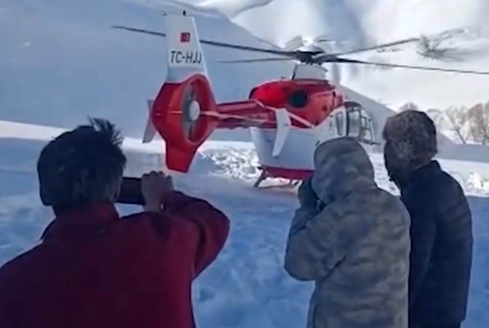 Hakkari’nin Şemdinli ilçesinde kar ve tipi nedeniyle yolu kapanan Alan köyünde sancıları başlayan hamile kadın, Sağlık Bakanlığına ait ambulans helikopterin dondurucu soğuk ve sarp araziye göğüs geren operasyonuyla hastaneye ulaştırıldı.