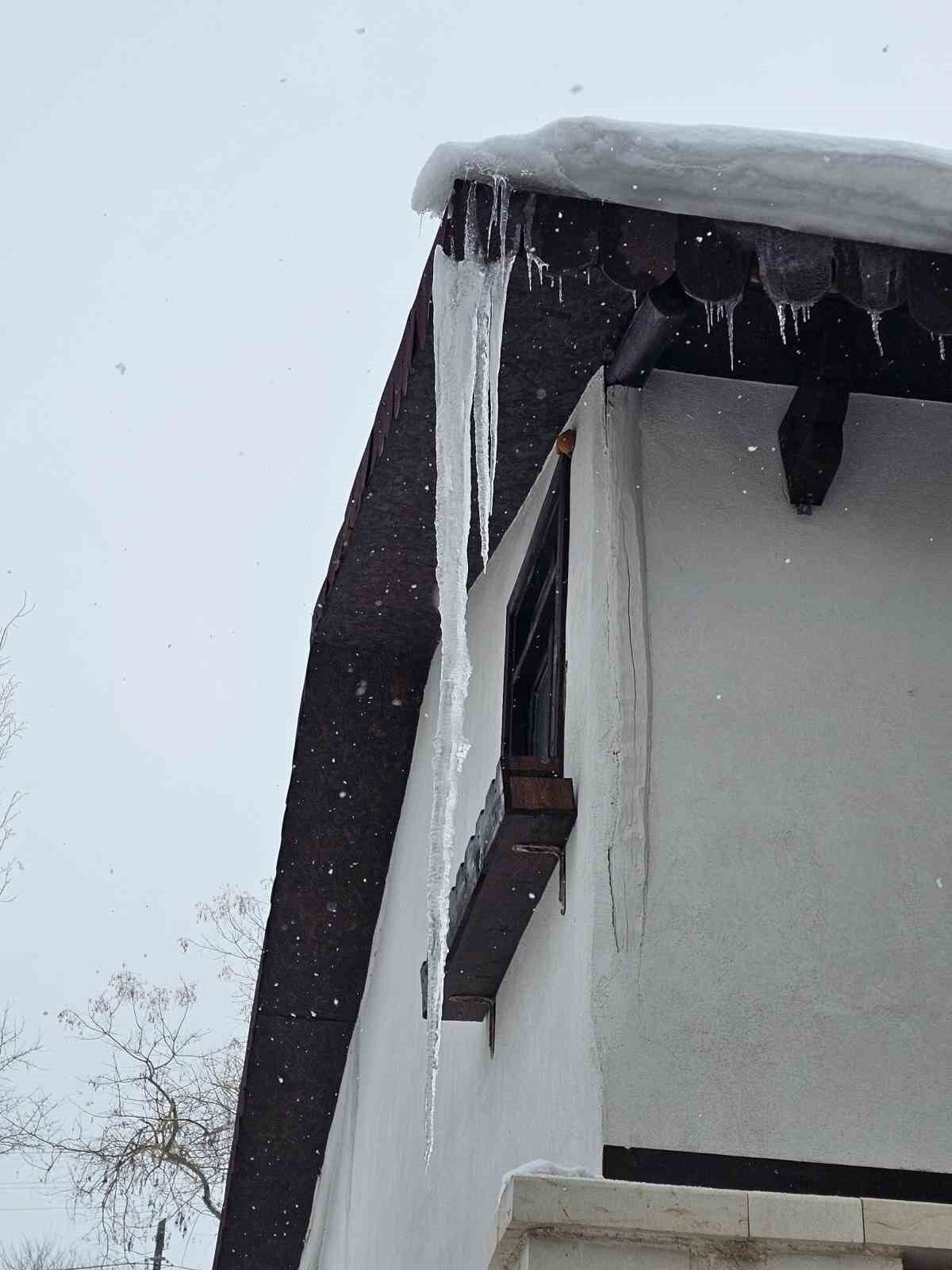 Soğuk havanın etkisiyle evlerin ve iş yerlerinin çatılarında buz sarkıtları meydana geldi.