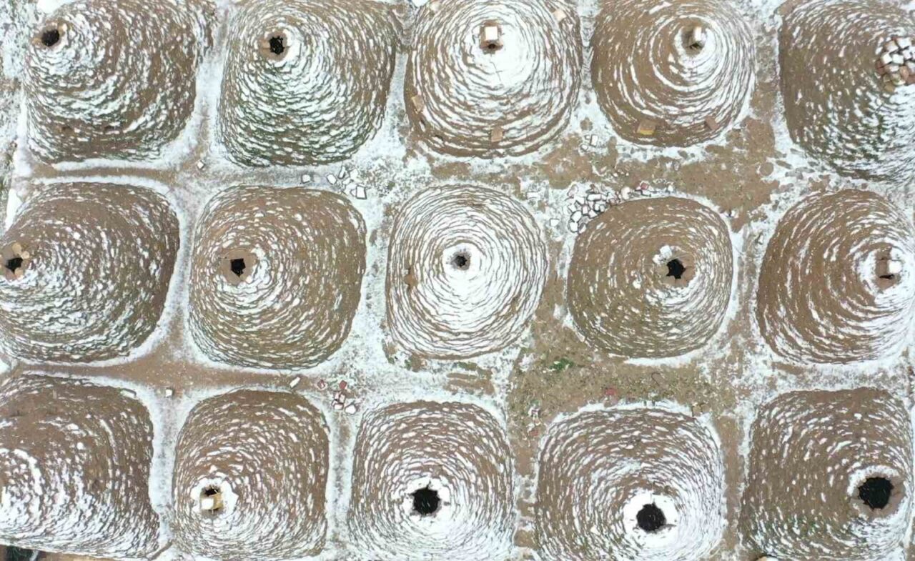 Şanlıurfa’nın tarihi ve turistik ilçesi Harran’da havadan görüntülenen kar görüntüleri eşsiz manzaralar oluşturdu.
