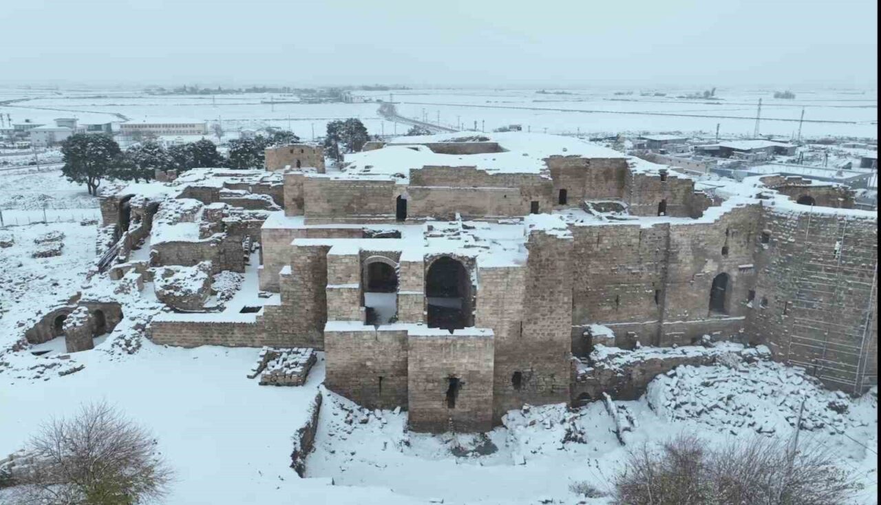 Türkiye’nin en sıcak illeri arasında yer alan Şanlıurfa’da kar görüntüleri eşsiz manzaralar oluşturmaya devam ediyor. Binlerce yıllık geçmişe sahip olan ve her yıl turistler tarafından yoğun bir şekilde ziyaret edilen Harran ilçesindeki tarihi yapılar, yağan kar ile birlikte beyaza büründü. Dünyanın en eski İslam üniversitesi olarak kabul edilen Harran Üniversitesinin kalıntıları, Harran Kalesi, Kümbet evleri, Hayat El Harrani Türbesi ile birçok tarihi yapı, beyaz örtü ile kaplandı. Havadan çekilen görüntüler ise eşsiz bir manzaranın ortaya çıkmasına sebep oldu.