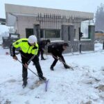 Osmaniye’nin Hasanbeyli ilçesinde etkili olan kar yağışının ardından emniyet mensupları, hizmet binalarının önünde ve çevresinde biriken kar kütlelerini kendi imkânlarıyla temizledi.