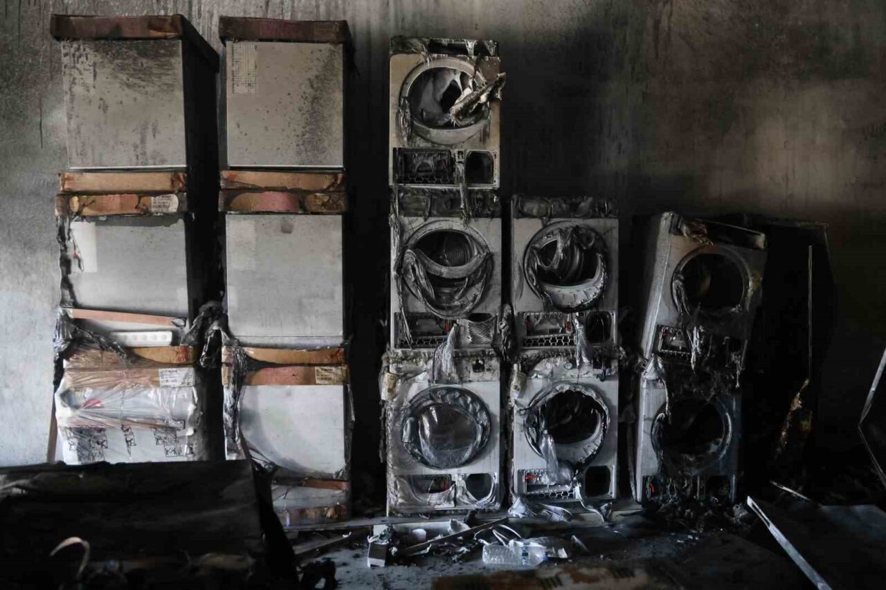 Hatay’ın Antakya ilçesinde, esnaf Mithat Uslu’ya ait bir beyaz eşya mağazasında meydana gelen yangın, mağazadaki 3 milyon TL değerindeki yeni ürünlerin kullanılamaz hale gelmesine yol açtı.