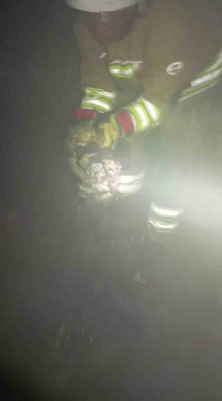 Hatay’da çıkan yangında itfaiye, evde kalan kediyi kurtardı.