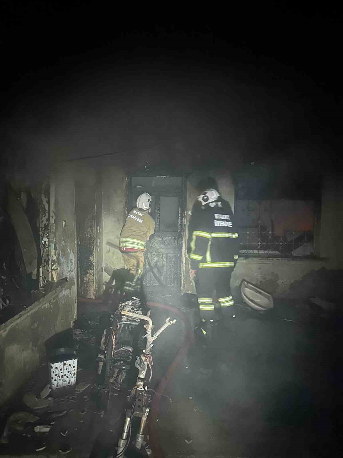 Hatay’da, alevlere teslim olan bir müstakil ev içerisindeki kedi, itfaiye ekipleri tarafından kurtarıldı.