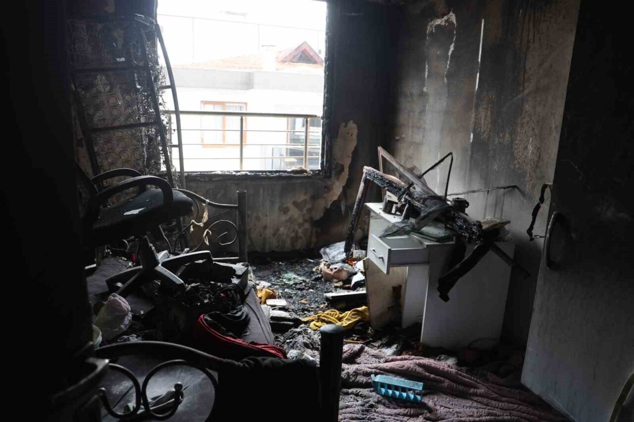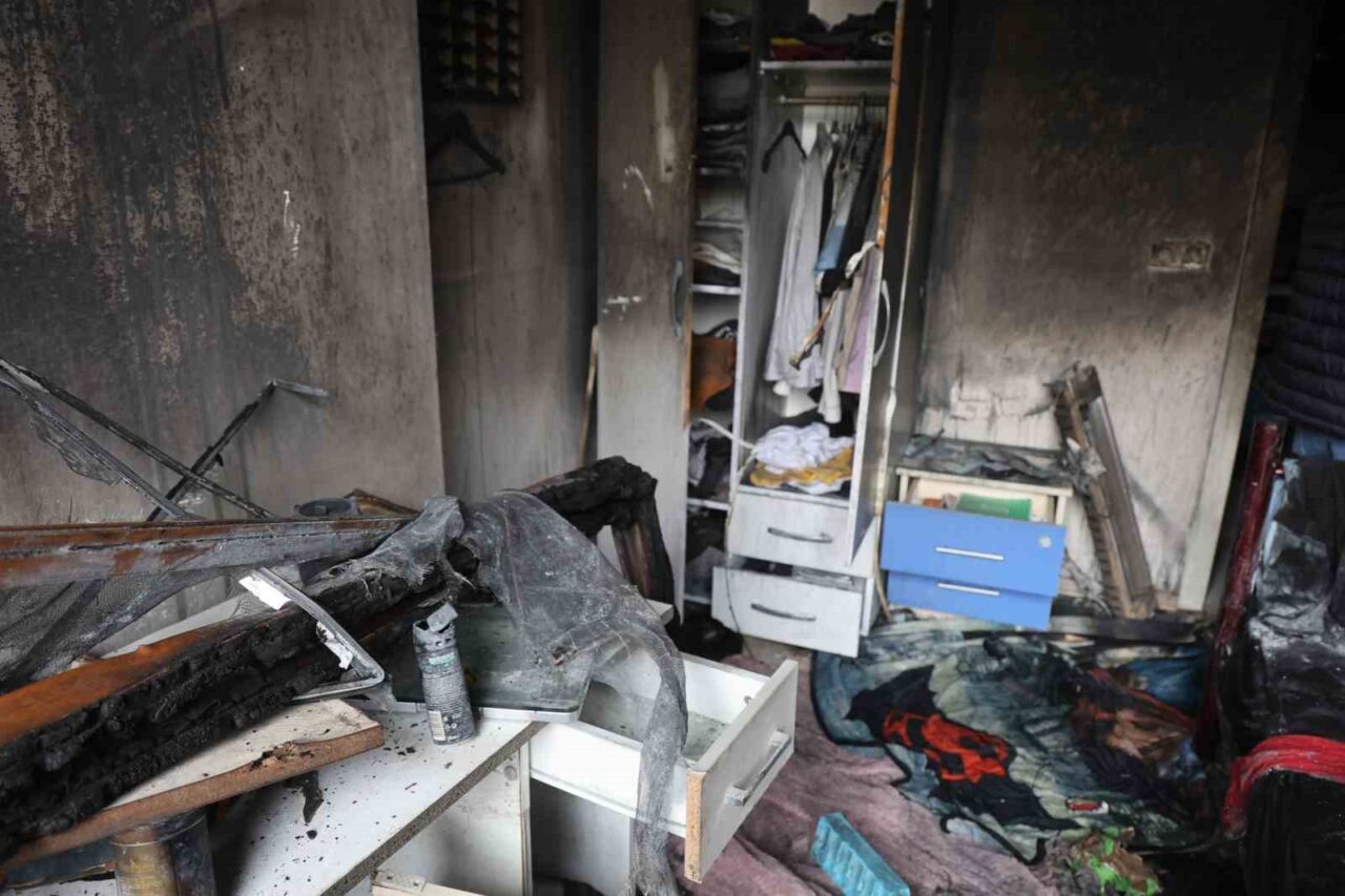 Evlatlarıyla evde oturdukları esnada alevlerin içine düştüklerini belirten Özlem Berrak, “Çocuklar birlikte yangın esnasında evdeydik. Oğlum yangın var anne dedi. Geldiğimizde kanepeler ve perdeler yanıyordu. Birden alevler yükselince müdahale edemedik. İtfaiye ekiplerine haber ettik. Ekipler de gelip müdahale ettiler. Yangını fark etmemiştik. Küçük oğlum koku var, yangın çıktı galiba diye söyledi. Geldiğimizde ise alevlerle karşılaştık. Apartman girişine inip yardım istedim, yardım edin diye bağırdım. Komşular da itfaiye ekiplerine haber verdiler. Depremde bu mahallede oturuyorduk. Depremde evimiz yan yattı ve sonrasında yıkıldı. Burada 1 yıldır yaşıyorum. Bu odada büyük oğlum kalıyor. Oğlum içeride değil de mutfaktaydı. Odasına geri döndüğünde, odam yanıyor diye bağırmıştı. Çocuğumun odası komple yandı ve biraz da benim odama sıçradı. Evimizin eski haline dönmesini çok istiyorum” şeklinde konuştu.