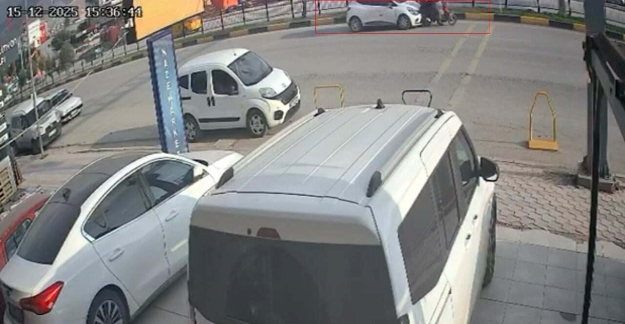 Hatay’ın İskenderun ilçesinde, bir otomobilin motosiklete çarpması sonucunda meydana gelen kaza anı, çevredeki bir iş yerinin güvenlik kamerasına yansıdı.