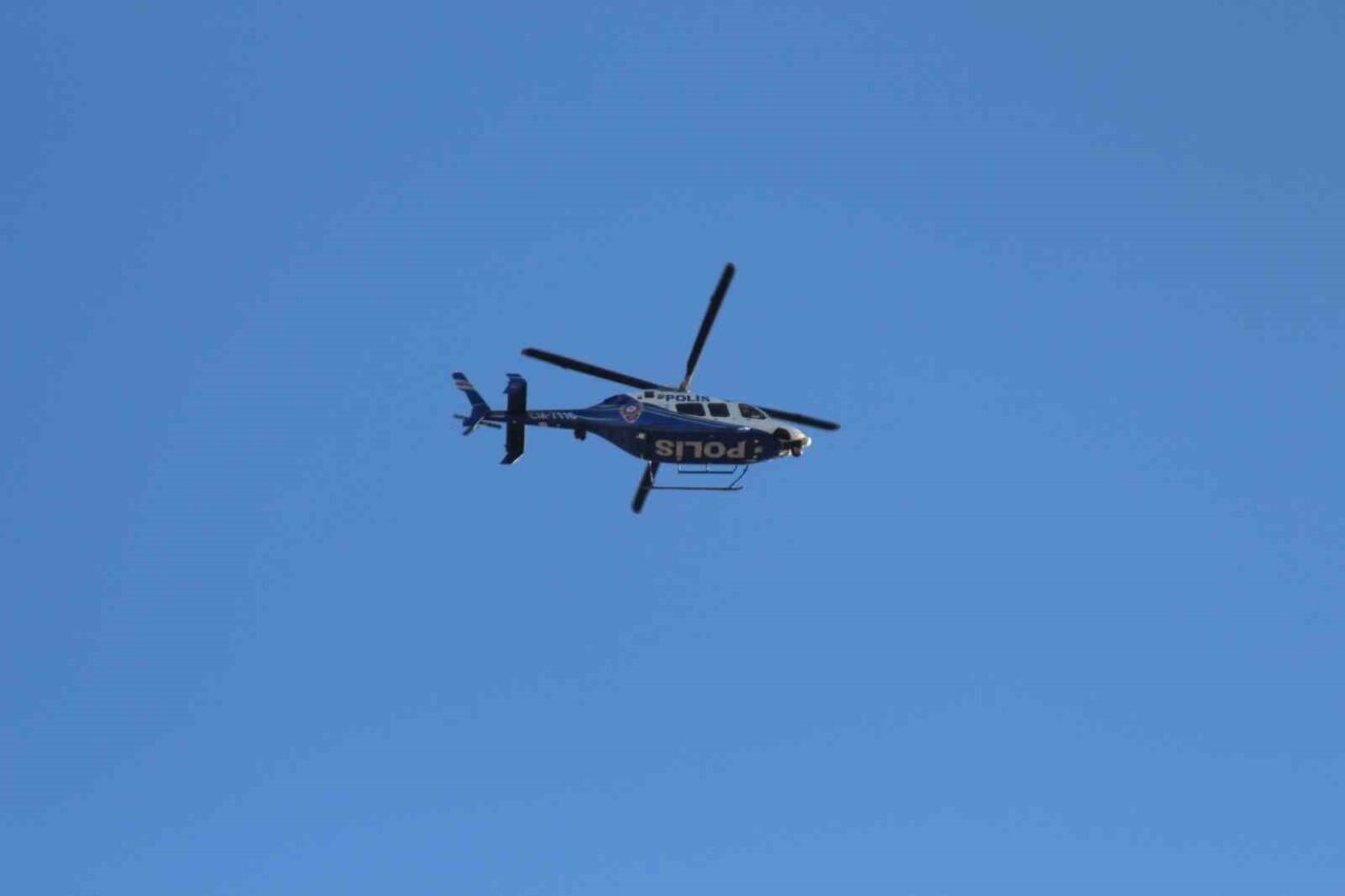 ŞÜPHELİLERİN SEVKİ SIRASINDA POLİS HELİKOPTERLERİNİN DE HAVADAN GÖZETİM YAPMASI DİKKAT ÇEKTİ.
