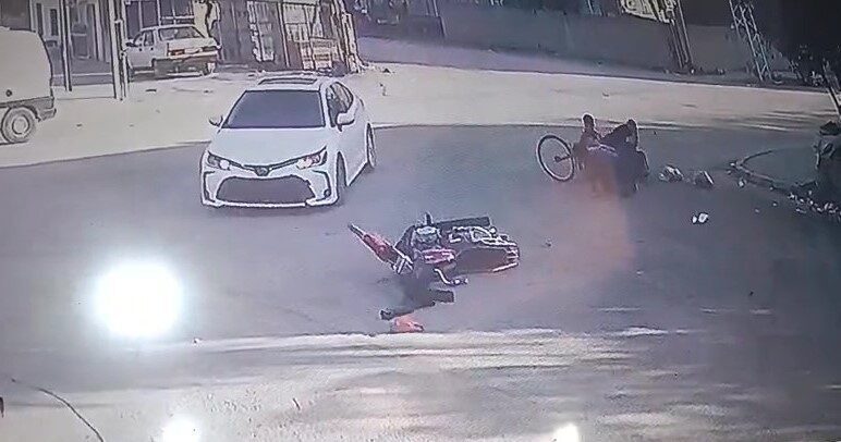 Hatay’da meydana gelen bir trafik kazasında, motosiklet sürücüsü, otomobille çarpışmasının ardından yere savrularak, yol kenarında yürüyen yaşlı bir çiftin üzerine düştü. Olayda toplamda 4 kişi yaralanma yaşadı.