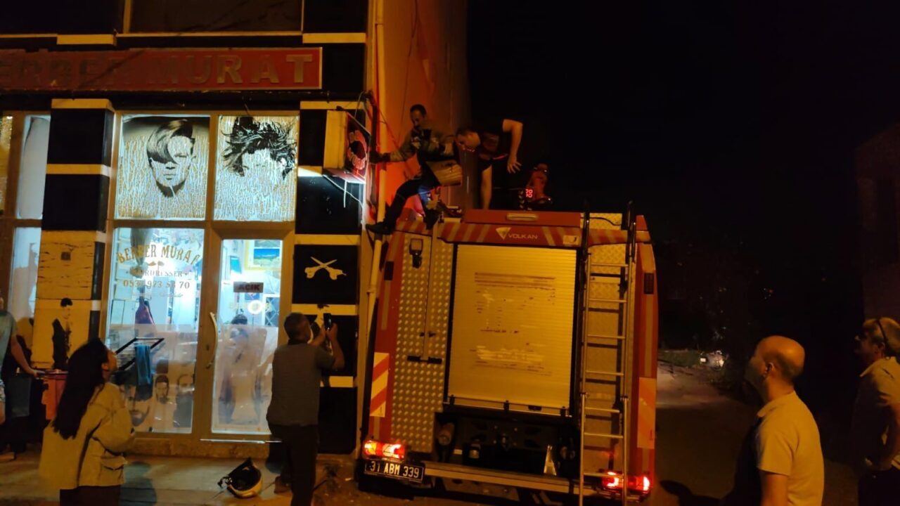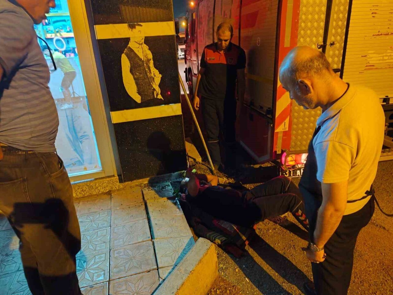 Hatay’da, bir iş yerinin reklam panosuna sıkışan kedi, itfaiye ekiplerinin dikkati sayesinde kurtarıldı.