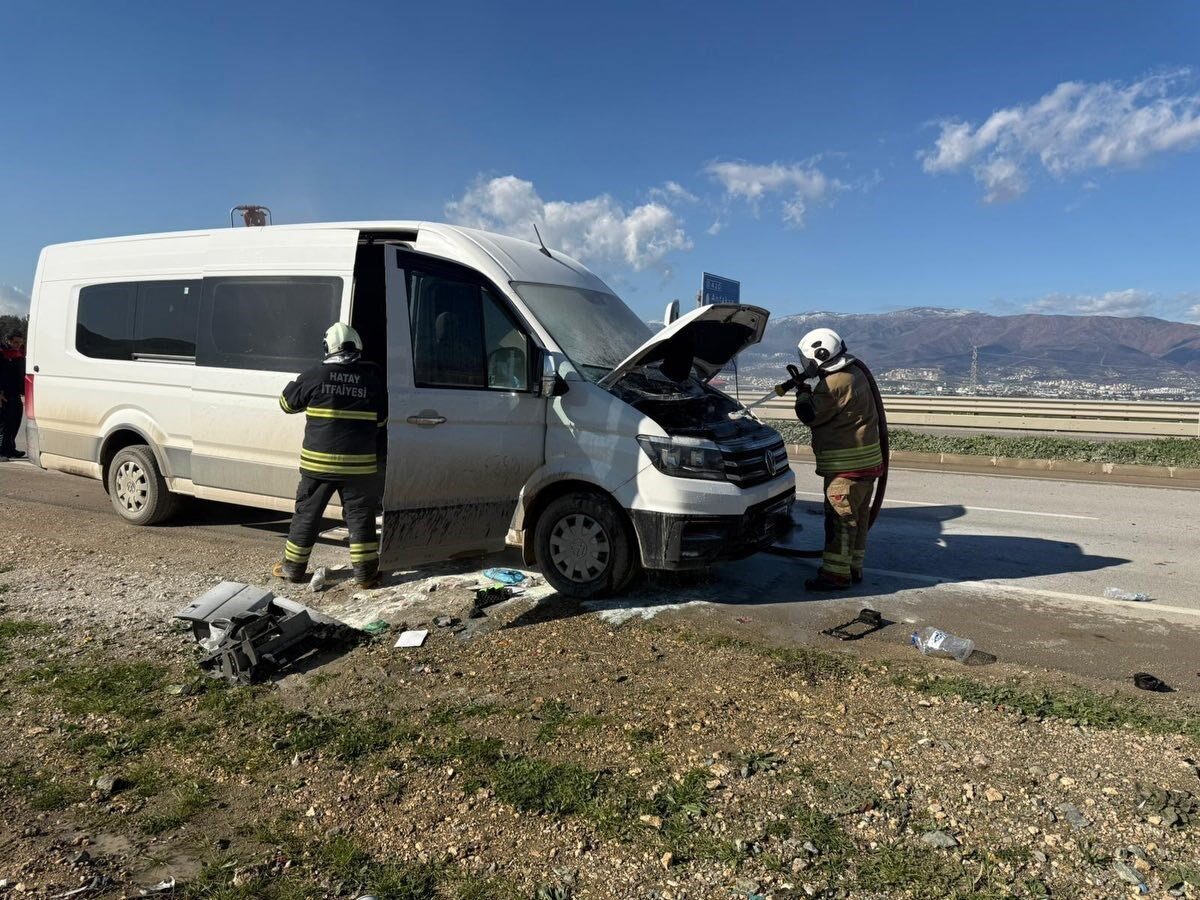 Yangın, Antakya ilçesi Narlıca Mahallesi’nde meydana geldi. Seyir halindeki minibüsün motor kısmından alevler yükselmeye başladı. Sürücünün durumu fark etmesi sonucunda bölgeye itfaiye ekipleri sevk edildi. Alevler, ekiplerin hızlı müdahalesi ile can kaybı ve yaralanma olmadan kısa sürede kontrol altına alındı. Yangında araçta hasar oluştu.