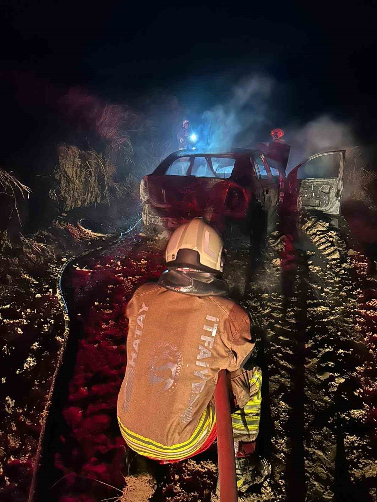 Hatay’da seyir hâlindeyken alev alan otomobil alevlere teslim oldu. Yangın sonucunda otomobil kullanılmaz hale geldi.
