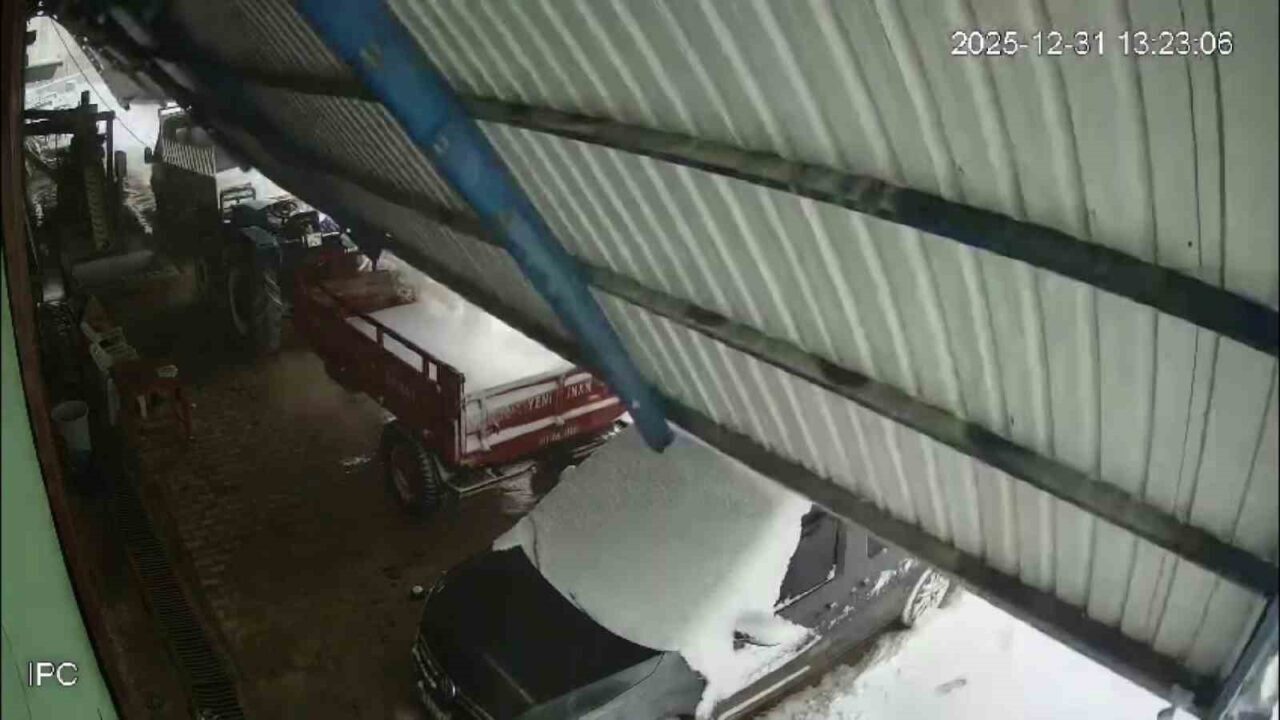 Meteorolojinin şiddetli yağış uyarısında bulunduğu Hatay’da gece saatlerinden itibaren kar yağışı etkili olmaya başladı. Şiddetli yağışla beraber çevre beyaza bürünürken, Altınözü ilçesinde yer alan Mayadalı Mahallesi’ndeki zeytinyağı fabrikasının çatısı, kar kütlesini taşıyamayarak çöktü. Güvenlik kameralarına yansıyan görüntülerde çatı, park halindeki traktör, kamyonet ve hafif ticari aracın üzerine devrildi. Olayda yaralanma meydana gelmezken, hafif ticari aracın camı hasar gördü.