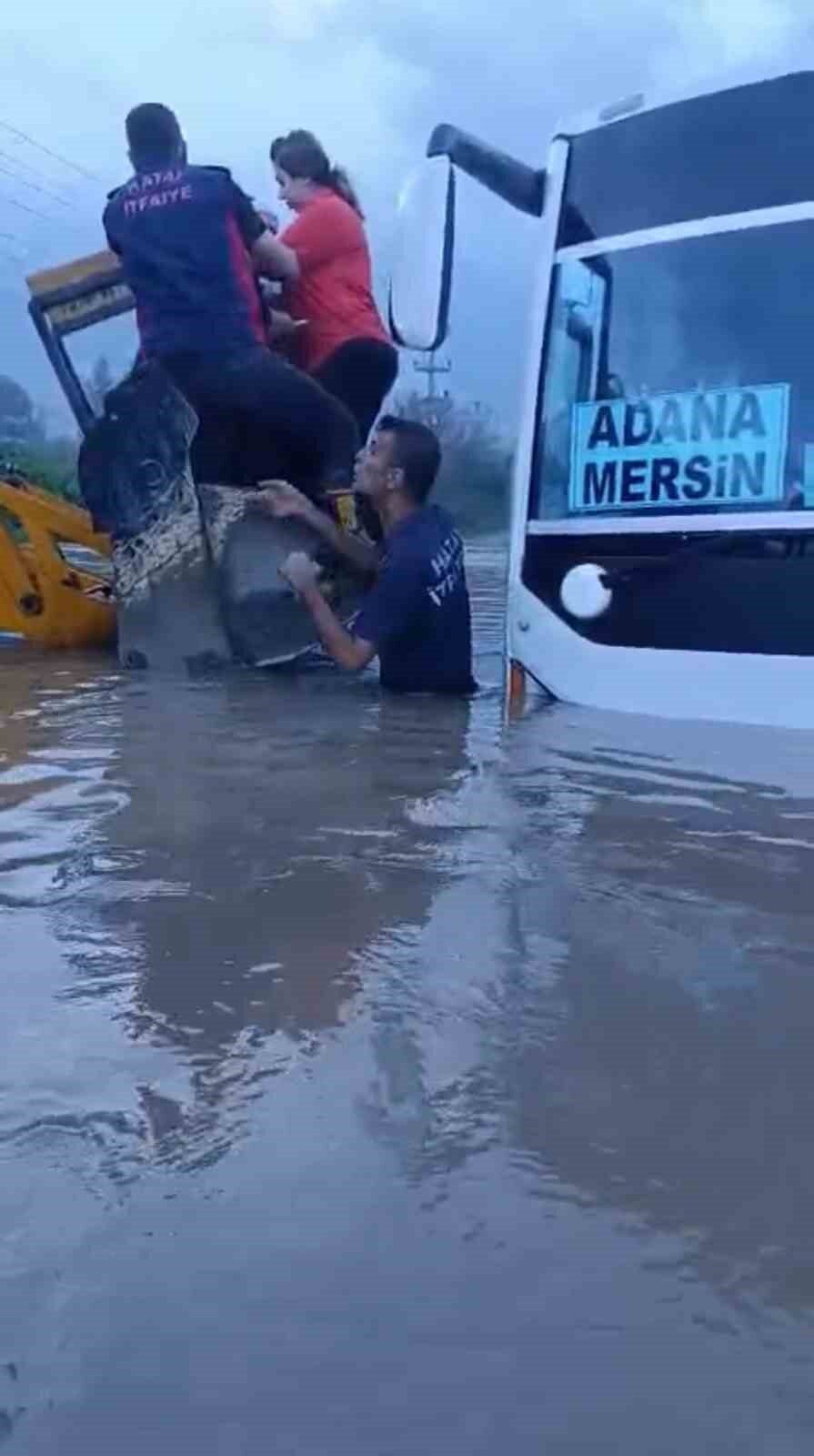 Hatay’da Şiddetli Yağış Sonrası Minibüste Mahsur Kalan Yolcular Kurtarıldı