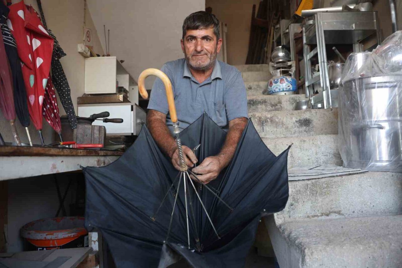 Hatay’da uzun bir süre devam eden kuraklığın ardından etkili olan şiddetli yağışlar, beldede yaşayan vatandaşlar için sıkıntılı bir duruma yol açtı. Geçtiğimiz günlerde meydana gelen sağanak yağışlarla birlikte şemsiyeleri bozulan pek çok kişi, 35 yıldır bu alanda hizmet veren usta zanaatkar Ali Devecioğlu’na başvurdu.