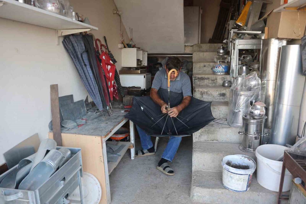 Hatay’da uzun bir süre devam eden kuraklığın ardından etkili olan şiddetli yağışlar, beldede yaşayan vatandaşlar için sıkıntılı bir duruma yol açtı. Geçtiğimiz günlerde meydana gelen sağanak yağışlarla birlikte şemsiyeleri bozulan pek çok kişi, 35 yıldır bu alanda hizmet veren usta zanaatkar Ali Devecioğlu’na başvurdu.