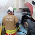 Hatay’da Tırın Motor Kısmında Çıkan Yangın İtfaiye Ekipleri Tarafından Büyümeden Söndürüldü
