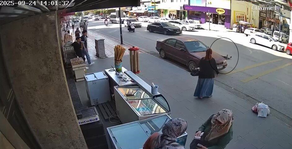 Hatay’ın Dörtyol ilçesinde, yolun karşısına geçmek isteyen bir kadının motosikletle çarpılması sonucu yaralandığı bildirildi. Kaza anı, çevredeki bir iş yerinin güvenlik kameralarına anbean yansıdı.