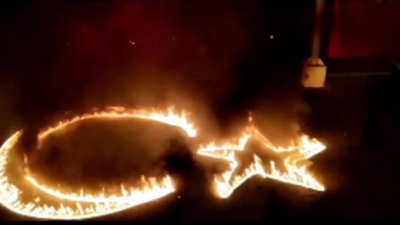 Hatay’da itfaiye ekipleri, 29 Ekim Cumhuriyet Bayramı’nı, alevlerle oluşturdukları ay yıldızlı hilal ile görkemli bir şekilde kutladı.
