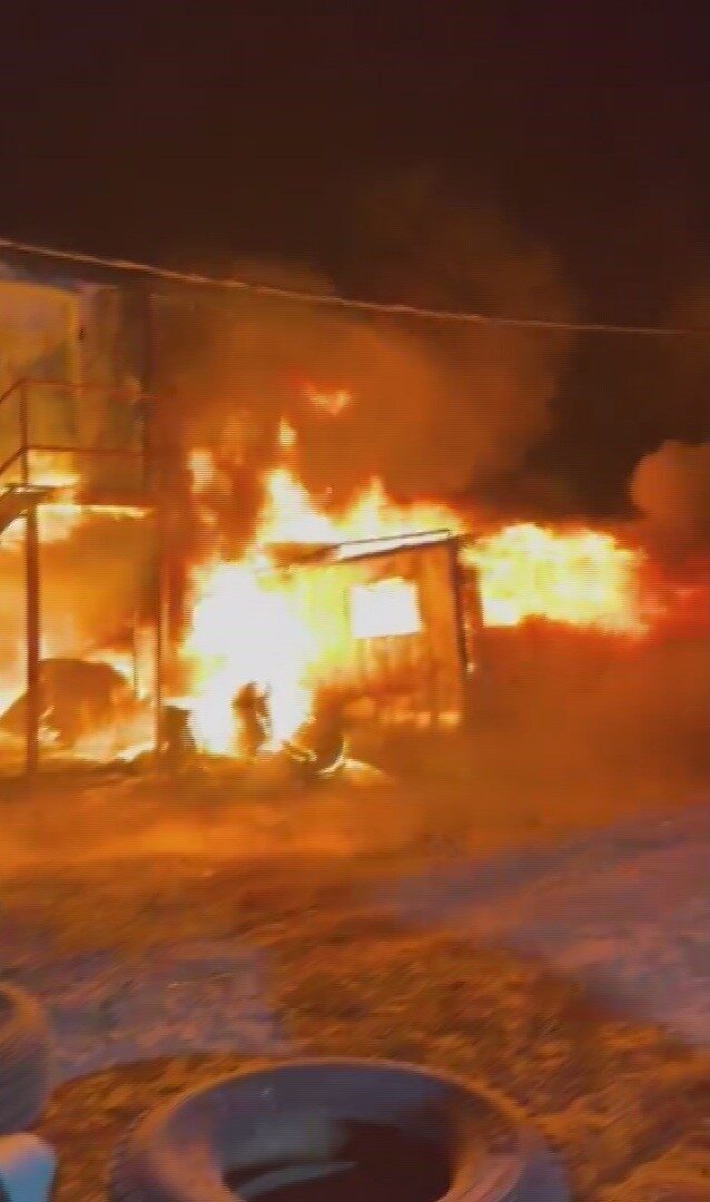 Hatay’ın Samandağ ilçesi Kurtderesi Mahallesi’nde bir şantiyede, işçilerin kaldığı konteyner yatakhane alev aldı. Yangının akşam saatlerinde çıkması, şantiyede çalışanları tedirgin etti.