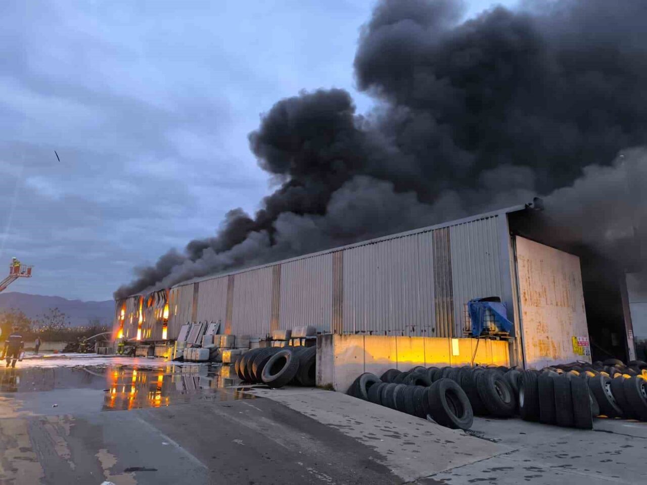 Yangın, Dörtyol ilçesi Yeşilköy Mahallesi’nde bulunan ULTRANS lojistiğe ait lastik deposunda meydana geldi. İhbar üzerine bölgeye itfaiye ekibi gönderildi. Çevre ilçelerden de itfaiye ekiplerinin yönlendirildiği yangında alevlerle mücadele sürüyor.