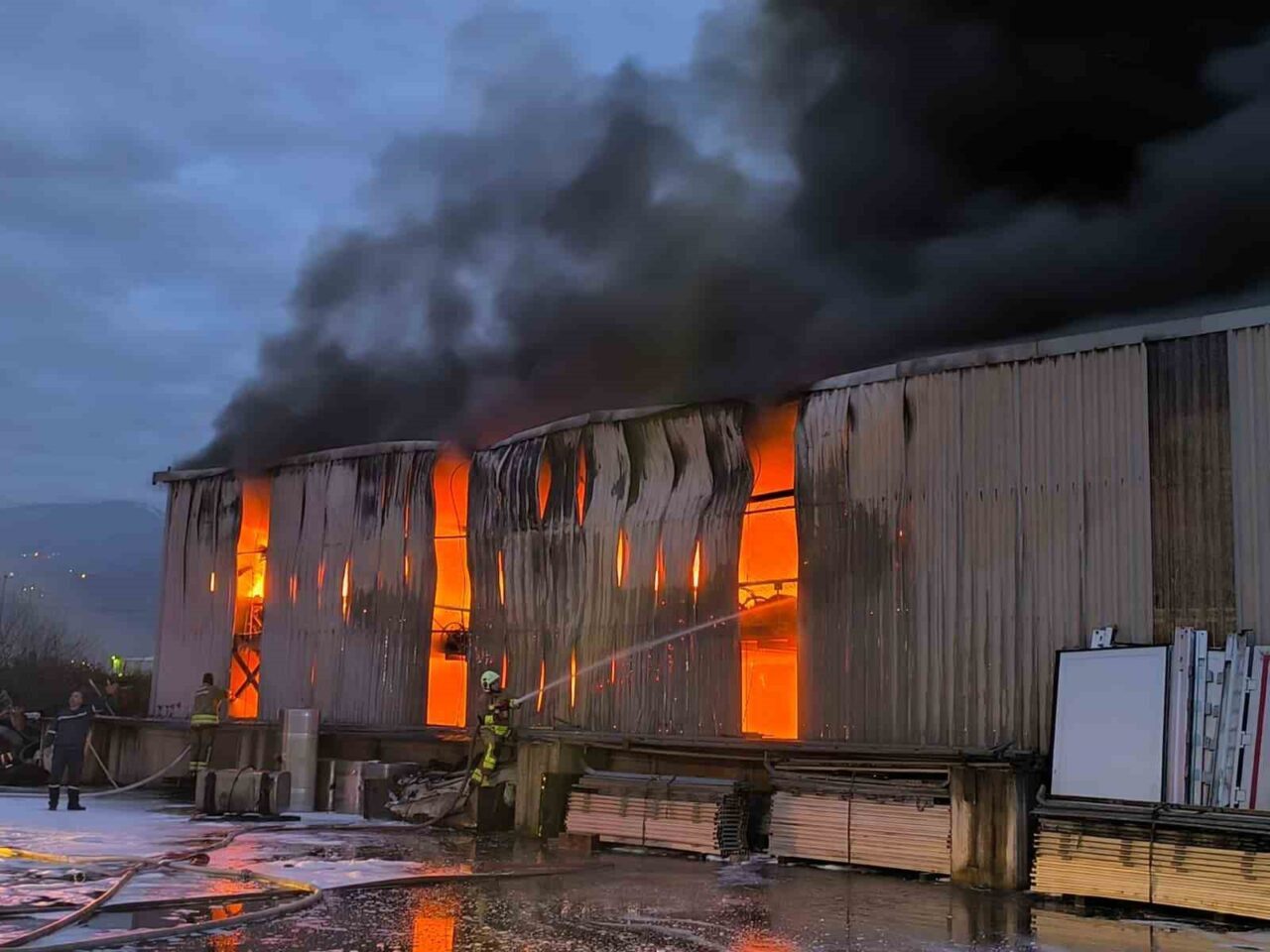 Yangın, Dörtyol ilçesi Yeşilköy Mahallesi’nde bulunan ULTRANS lojistiğe ait lastik deposunda meydana geldi. İhbar üzerine bölgeye itfaiye ekibi gönderildi. Çevre ilçelerden de itfaiye ekiplerinin yönlendirildiği yangında alevlerle mücadele sürüyor.