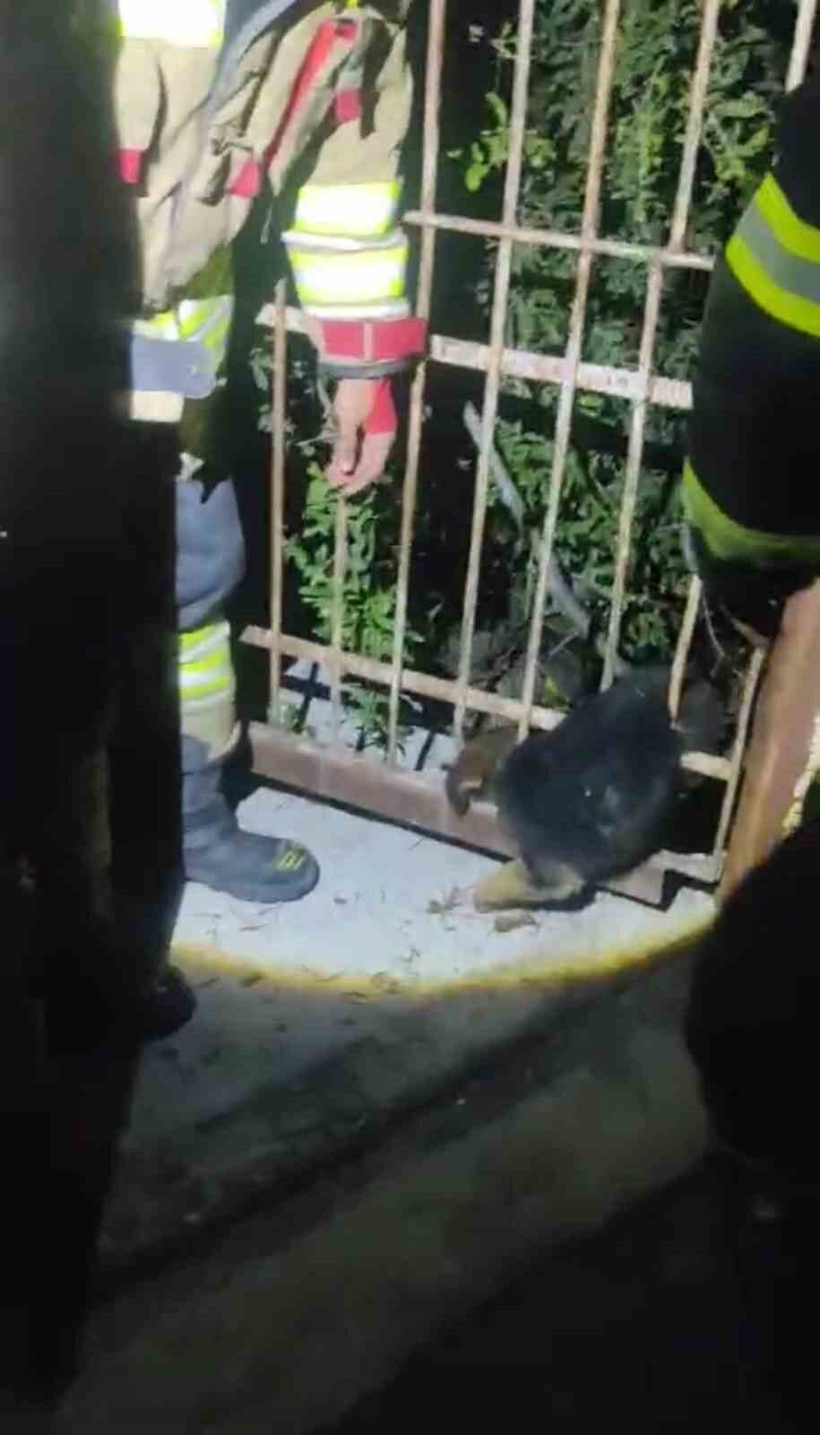 Kısa sürede olay mahalline ulaşan itfaiye ekipleri, yavru köpeği herhangi bir zarar vermeden kurtarabilmek için titizlikle çalışmalara başladı. Demir kesme makinesi kullanarak yapılan dikkatli müdahale ile köpek, sıkıştığı yerden kurtarıldı. İyi bir sağlık durumu olduğu bildirilen yavru köpek, kurtarıldıktan sonra güvenli bir alana götürüldü.