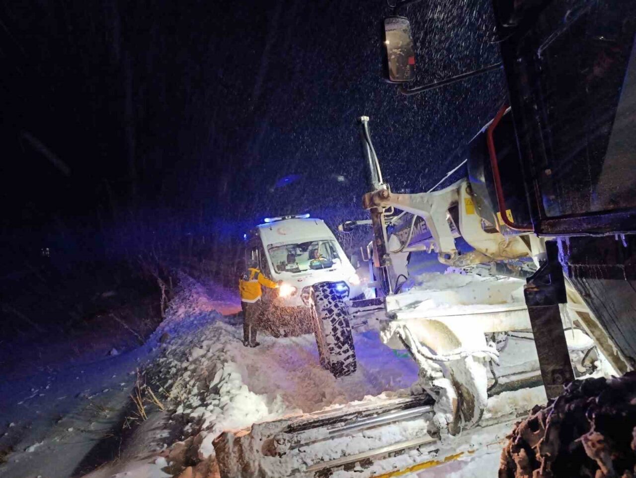 Diyarbakır’ın Hazro ilçesinde sağlık ekipleri, rahatsızlanan 1 yaşındaki Mina’ya greyder eşliğinde ulaştı.