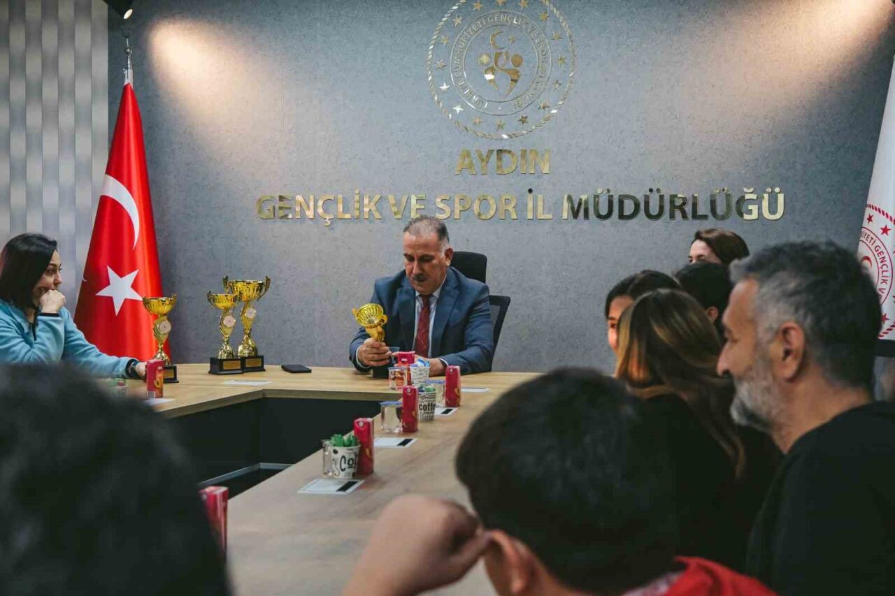Aydın’da madalyalarla dönen sporcular, Aydın Gençlik ve Spor İl Müdürü Serhat Yığmatepe’yi ziyaret etti. Ziyarette, şampiyonada takım ve ferdi kategorilerde dereceye giren sporcular yer aldı. Antrenörlerin de katıldığı ziyarette, madalyalarla Aydın’ı gururlandıran gençler için hazırlanan şampiyonluk pastası kesildi. Sporcuları tebrik eden Aydın Gençlik ve Spor İl Müdürü Serhat Yığmatepe, şampiyonada elde edilen başarıların gurur verici olduğunu ifade ederek sporcuları ve antrenörlerini tebrik etti, başarılarını kutladı ve spor hayatlarında başarılarının devamını diledi.