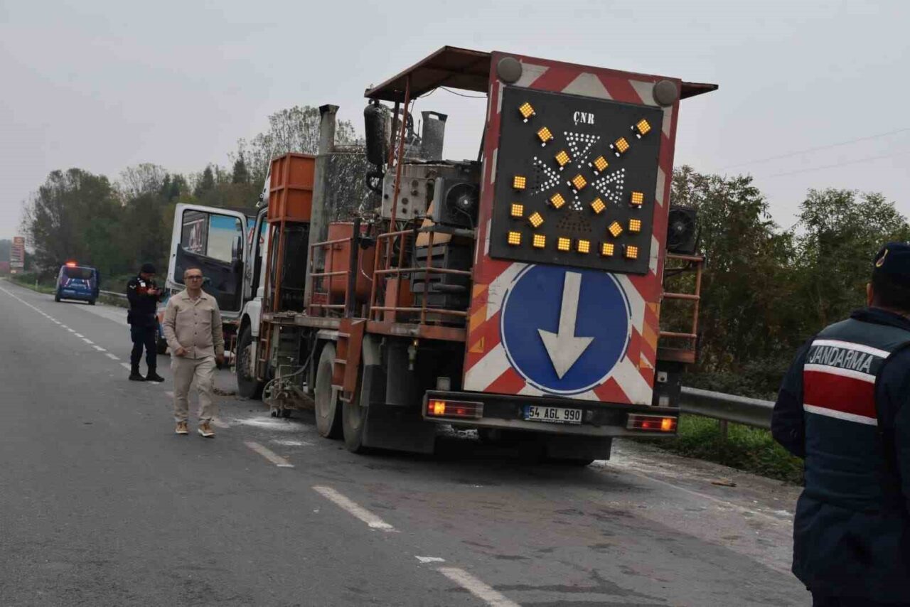 Kargalıhanbaba Mahallesi yakınlarında gerçekleşen kazada, özel bir şirkete ait 54 AGL 990 plakalı kamyonun dorsesinde yer alan şerit çizme makinesi, aniden patlayan kazanıyla gündeme geldi. Olayda yaralanan işçiler E.C.E. (28) ve E.Y. (30) hastaneye kaldırıldı.