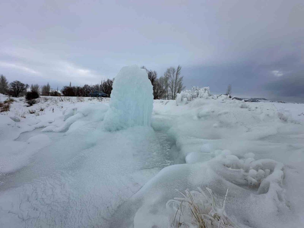 Yetkililerden alınan bilgiye göre, buz kütlesinin yer altı sularının yüzeye çıkıp aşırı soğuk hava nedeniyle donması sonucu oluştuğu ifade edildi. Bölgedeki sert kış şartlarının, bu tür nadir doğa olaylarını ortaya çıkardığı bildirildi.