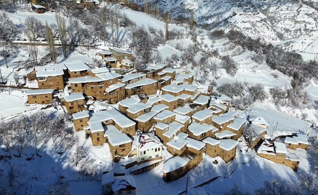 Bitlis’in Hizan ilçesindeki taş evlerden oluşan köyler, kar yağışıyla birlikte kartpostallık manzaralar oluşturuyor.