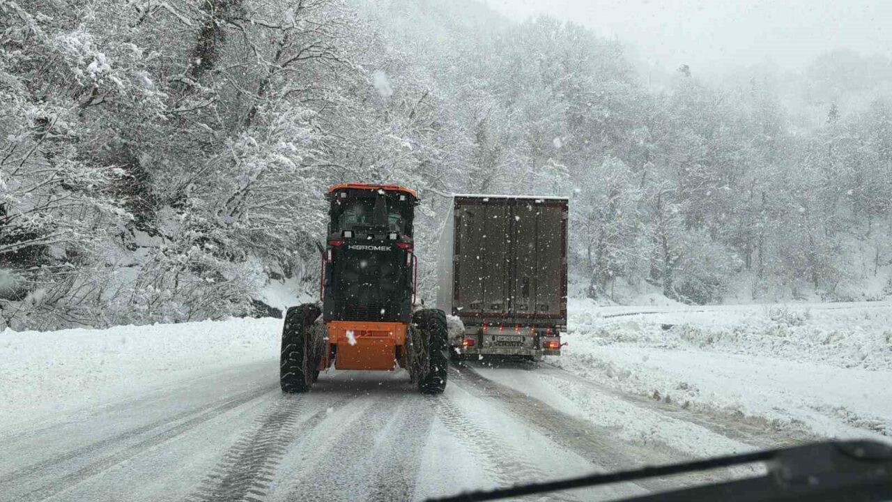 Yolun trafiğe açık kalabilmesi için bölgede kar küreme ve tuzlama çalışmaları devam etmektedir. İş makineleri ile biriken kar temizlenirken, ekipler özellikle risk taşıyan noktalarda yoğun bir çalışma sergiliyor.