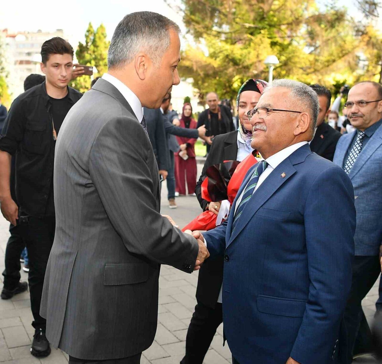 Bir dizi etkinlik için Kayseri’ye gelen İçişleri Bakanı, Vali Gökmen Çiçek’i ziyaretinin ardından Büyükşehir Belediye Başkanı ile bir araya geldi. Başkan Büyükkılıç, Bakan Yerlikaya’yı çiçeklerle karşıladı ve ardından başkanlık makamına geçildi.