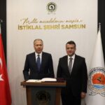 Başkanlık makamında gerçekleşen ziyaret, anı defterinin imzalanması ve hatıra fotoğrafı çekilmesi ile sona erdi.