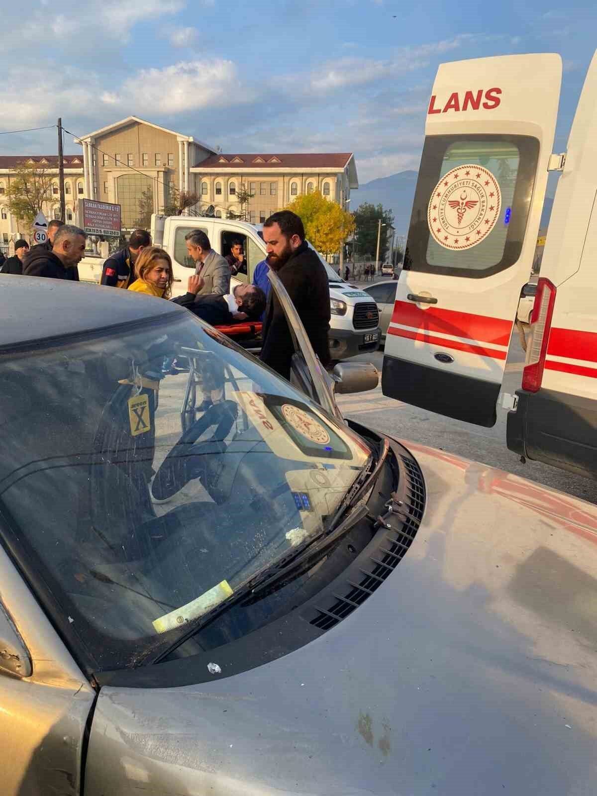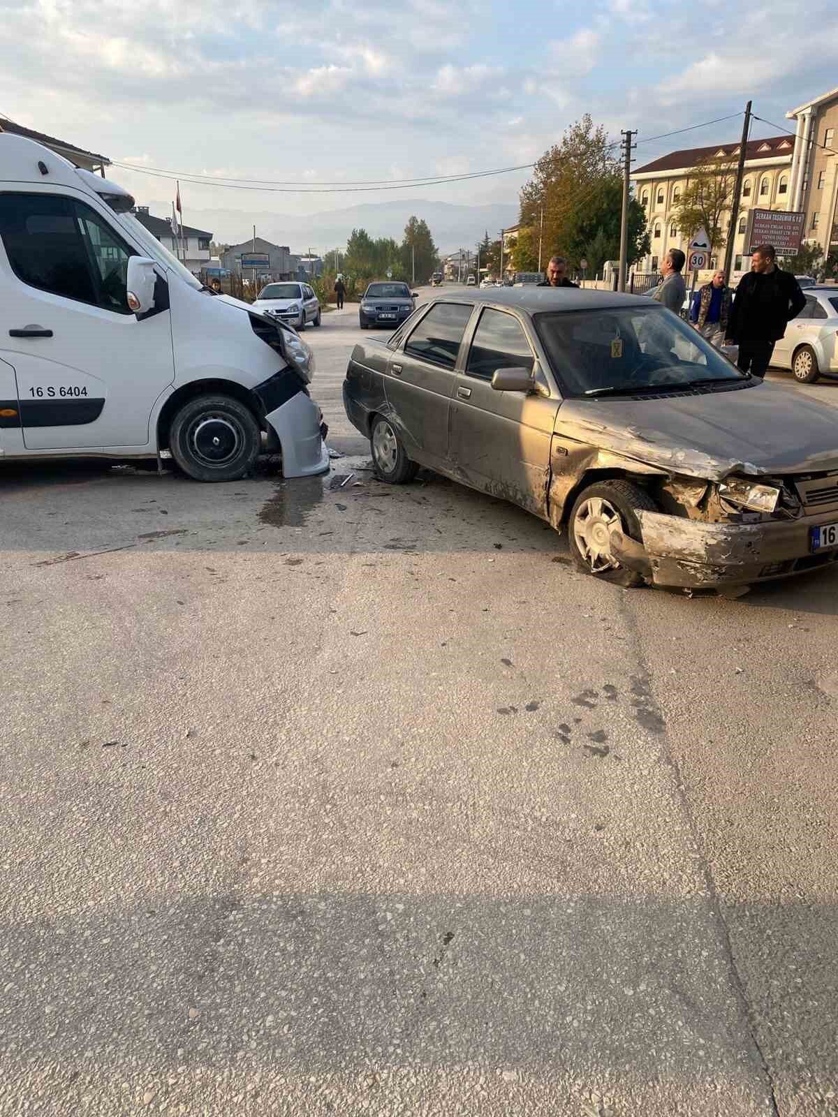 Olay, saat 09.00 civarında Akhisar Mahallesi 2. Fatih Caddesi üzerinde gerçekleşti. Sürücü Selver Ş. (35) yönetimindeki 16 LKS 44 plakalı otomobil, bir ara sokaktan çıkmakta olan Davut Ö. idaresindeki 16 S. 6404 plakalı servis minibüsüyle çarpıştı. Çarpmanın etkisiyle otomobilin sürücüsü yaralandı. Olay yerine gelen ambulans, yaralıyı İnegöl Devlet Hastanesi’ne kaldırmak üzere sevk etti.