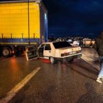 Kaza, saat 18.30 sıralarında Akhisar Mahallesi Karalar yolunda gerçekleşti. Hasan G. (18) idaresindeki 33 BCZ 69 plakalı otomobil, sürücüsünün kontrolünden çıkarak ara sokaktan çıkan Hakan Y. (41) yönetimindeki 16 PK 840 plakalı tıra arkadan çarptı. Tırın altına giren otomobilin sürücüsü yaralandı. Yaralı, kaza yerine gönderilen ambulansla İnegöl Devlet Hastanesi’ne kaldırıldı.