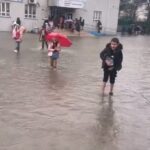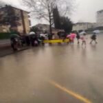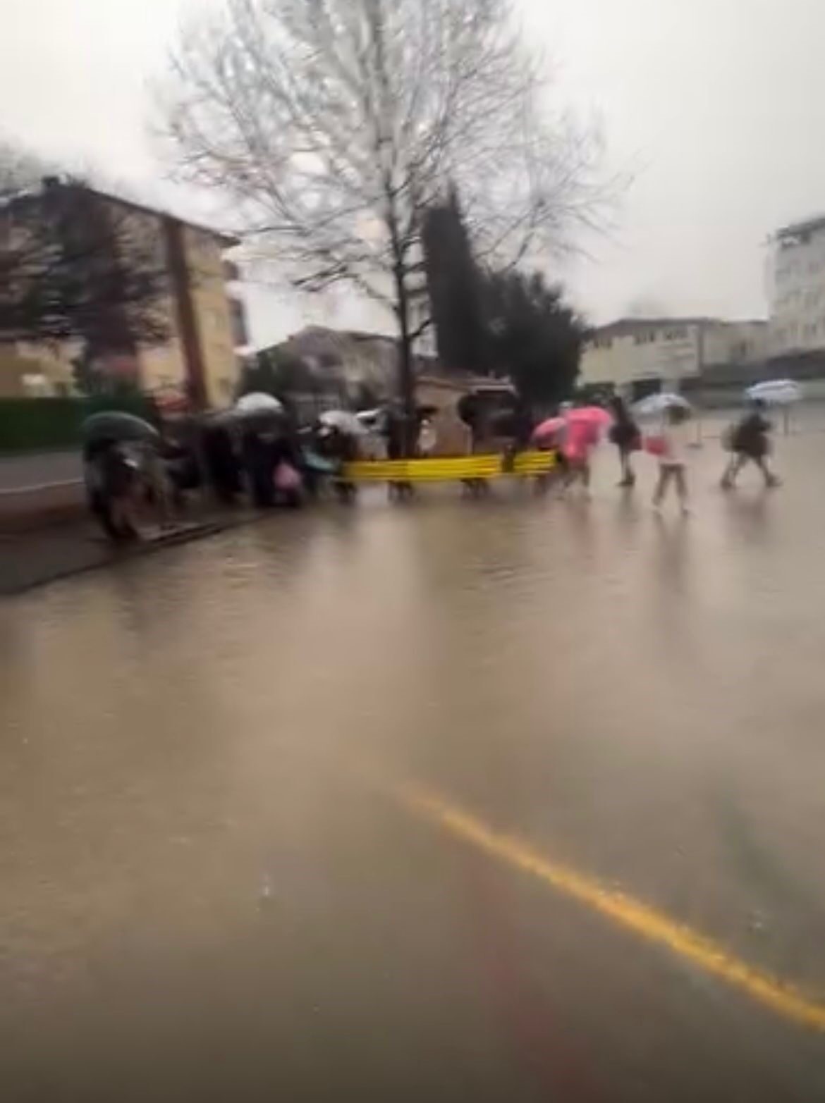 Olay Mahmudiye Mahallesi’nde eğitim öğretime devam eden Müşerref Muzaffer Samda İlkokulu bahçesinde meydana geldi. Yoğun yağış nedeniyle okulun bahçesi göle döndü. Veliler öğrencileri okuldan çıkarmak için bankları sıralayıp geçirdiler.