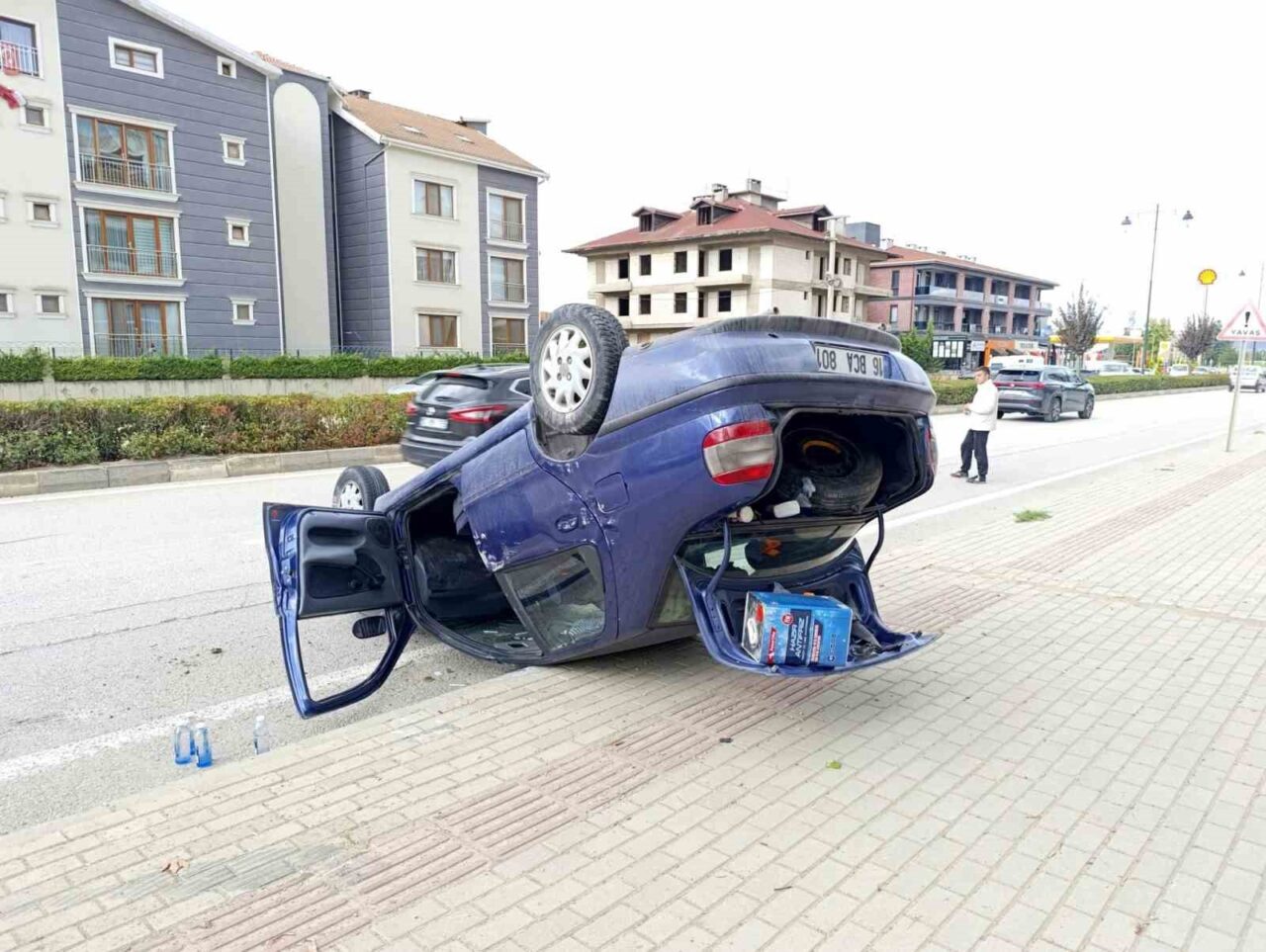 Bursa’nın İnegöl ilçesinde gerçekleşen trafik kazasında takla atarak ters dönen bir aracın sürücüsü yaralandı. Kaza anı, olayın yaşandığı sırada bir sitenin güvenlik kameralarına yansıdı.