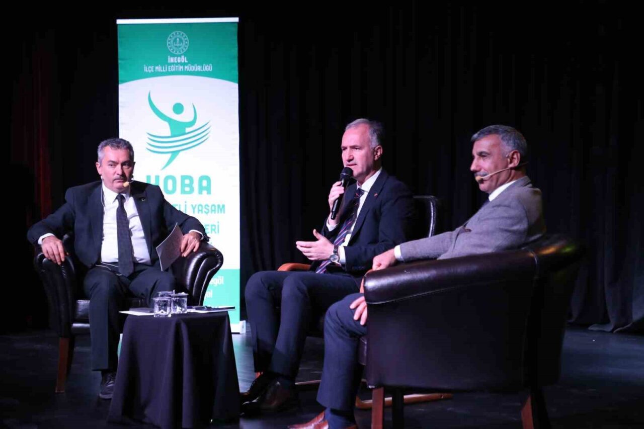 Moderatörlüğünü İnegöl Milli Eğitim Müdürü Halil İbrahim Zengin’in üstlendiği etkinlikte, İl Milli Eğitim Müdür Vekili Yunus Bulut da hazır bulundu. Naire Çikayeva Anadolu Lisesi, Turgutalp Anadolu Lisesi ve Altıeylül Ortaokulu’ndan öğrencilerin katılım gösterdiği söyleşide, Yunus Bulut, “Bursa İl Milli Eğitim Müdürlüğü olarak çocuklarımızın gelişiminde önemli rol oynayan tüm unsurları göz önünde bulunduruyoruz. Bu kapsamda hayata geçirdiğimiz HOBA Projesi, yerel bir inci niteliğinde olup İnegöl bu projede ön sıralarda yer alıyor. Başkanımıza, Milli Eğitim camiamıza ve öğretmenlerimize teşekkür ediyorum. HOBA Otobüs Projemiz, çocuklarımızın önemsendiğinin en büyük kanıtıdır.” ifadelerini kullandı.
