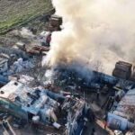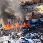 Bursa’nın İnegöl ilçesinde bulunan bir geri dönüşüm (hurdacı) tesisinde yangın meydana geldi. Yangın havadan çekilen görüntülerle kaydedildi.