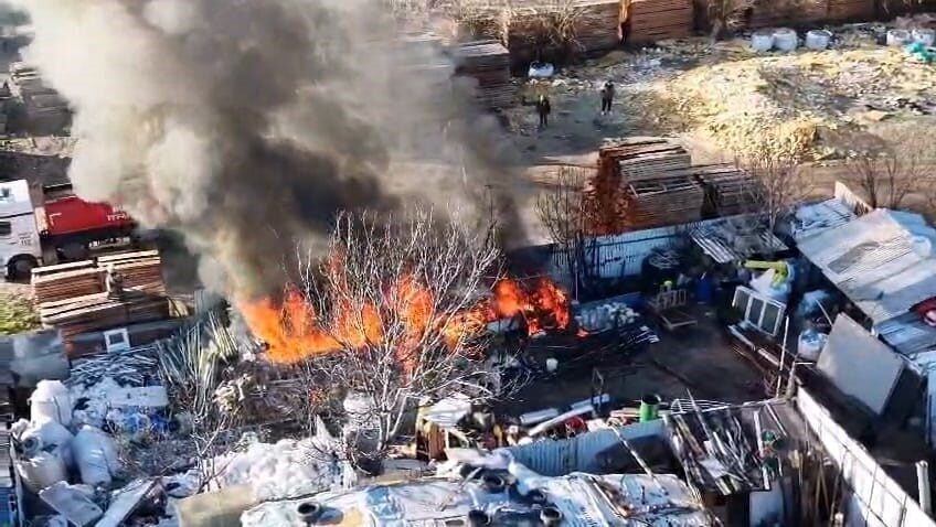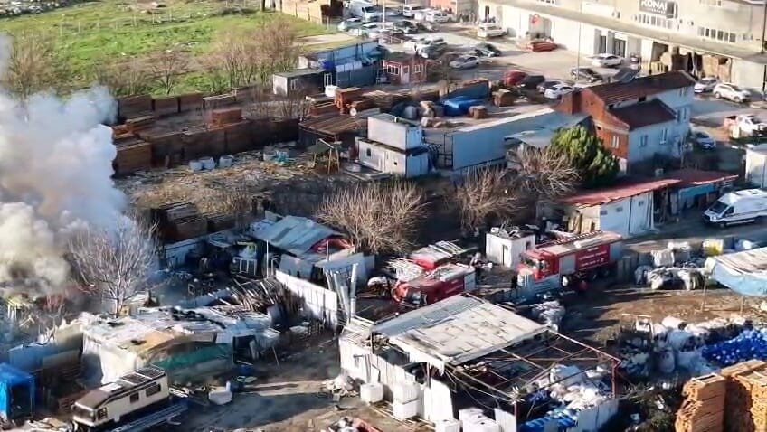 Bursa’nın İnegöl ilçesinde bulunan bir geri dönüşüm (hurdacı) tesisinde yangın meydana geldi. Yangın havadan çekilen görüntülerle kaydedildi.