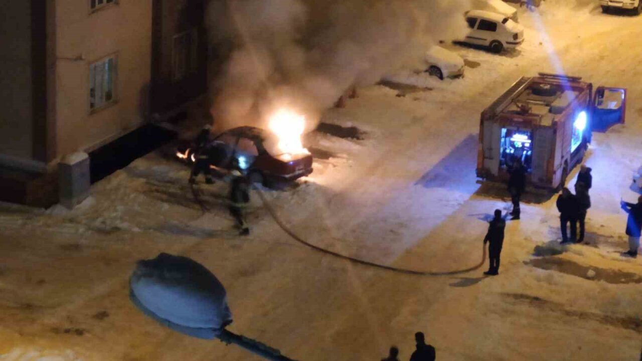Van’ın İpekyolu ilçesinde park halinde bulunan bir otomobil alev alev yanarak kullanılmaz hale geldi.